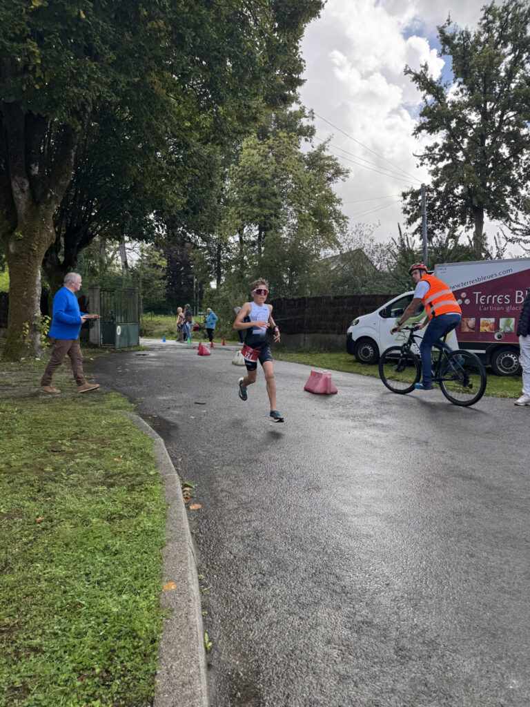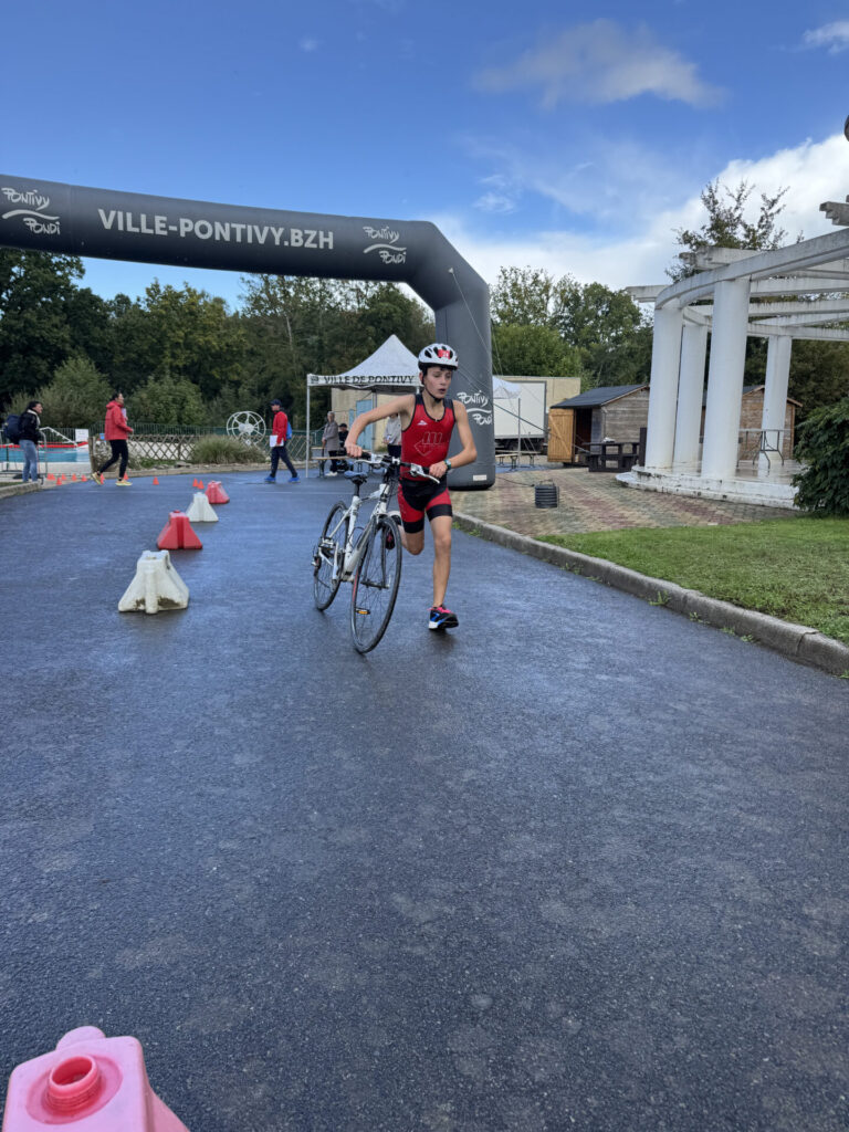 Tristan, en catégorie minimes, participait à son premier triathlon, il repart riche en expérience et prêt à prendre de nouveau le départ.